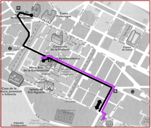 Recorrido: Plaza Mayor, c/Juan Anglada, c/Inclusa, Plaza Labradores, c/ San Ramón y c/La Plata.